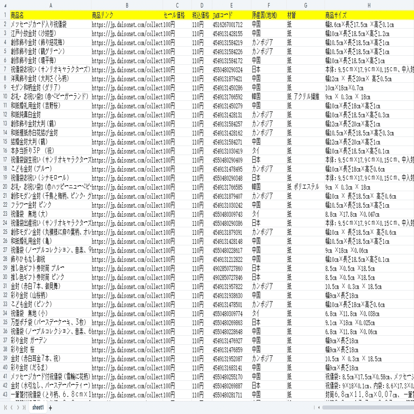 ネットストア!DAISO公式通販から商品の情報をスクレイピングする