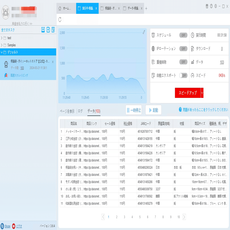 必要に応じて、スケジュール、アンチブロック、自動エクスポート、写真のダウンロード、スピードブーストを設定できます。サーバーに負荷しないように、遅延時間を設定してください。5秒以上を推薦します。スクレイピングタスクを配置する方法については、下記のチュートリアルをご参照ください。