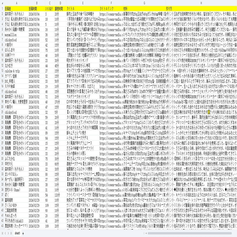 簡単レシピ・家庭料理!Nadiaからレシピをスクレイピングする