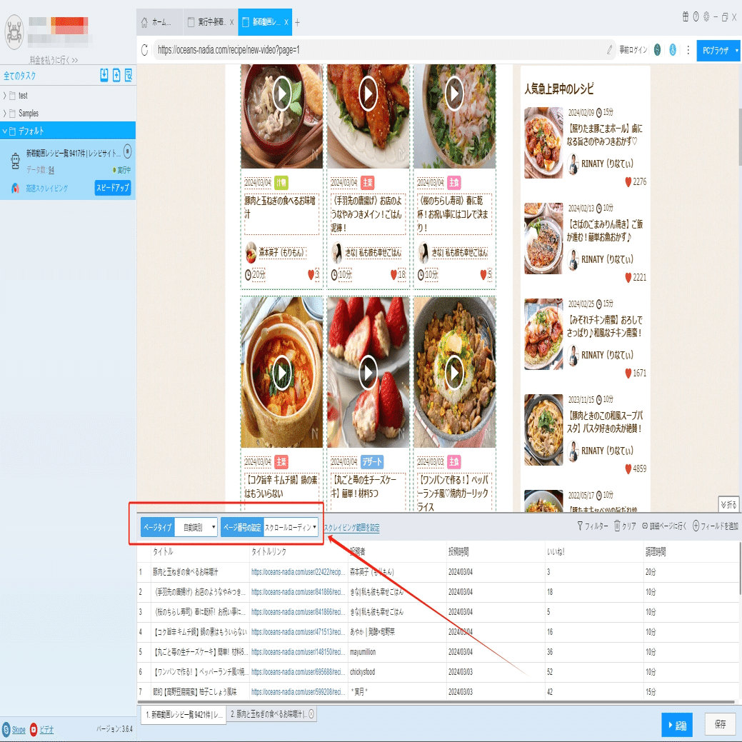 ソフトウェアの「詳細ページに行く」機能を利用し、材料、作り方などの情報を抽出します。