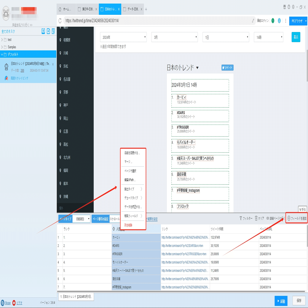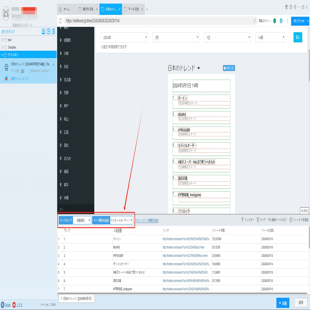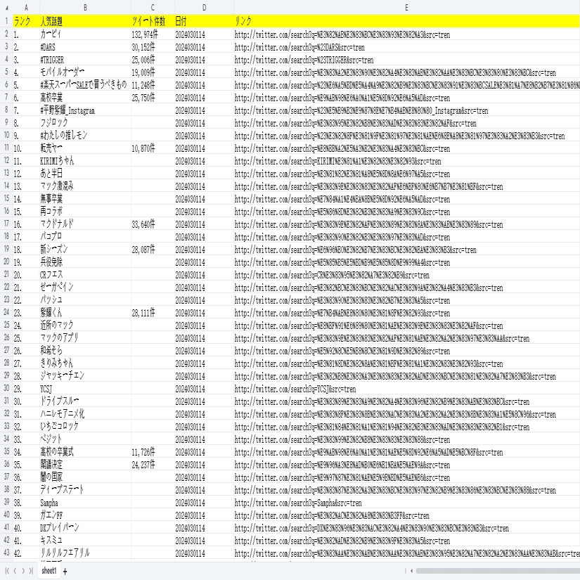 ツイッター!Twittrendから人気話題の情報をスクレイピングする