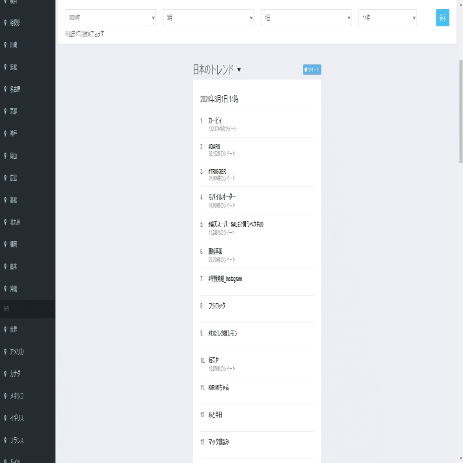 今回は三月の話題ランキングを収得し、そのスクレイピング方法を紹介します。まず、日付を入力して、検索結果ページのリンクをコピーしてください。
