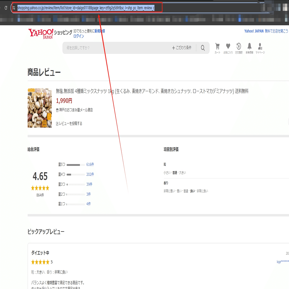 通販サイト | Yahoo!ショッピングから商品のレビューをスクレイピング
