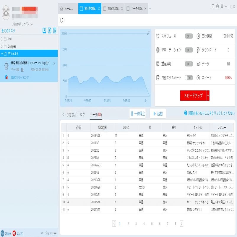 必要に応じて、スケジュール、アンチブロック、自動エクスポート、写真のダウンロード、スピードブーストを設定できます。サーバーに負荷しないように、遅延時間を設定してください。5秒以上を推薦します。スクレイピングタスクを配置する方法については、下記のチュートリアルをご参照ください。