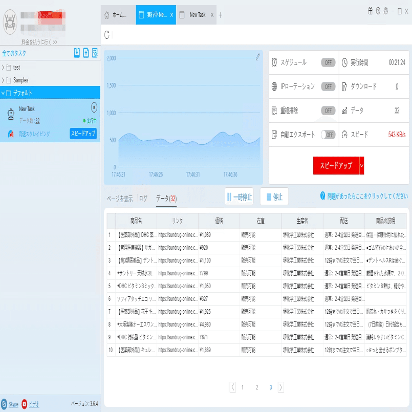 必要に応じて、スケジュール、アンチブロック、自動エクスポート、写真のダウンロード、スピードブーストを設定できます。サーバーに負荷しないように、遅延時間を設定してください。5秒以上を推薦します。スクレイピングタスクを配置する方法については、下記のチュートリアルをご参照ください。