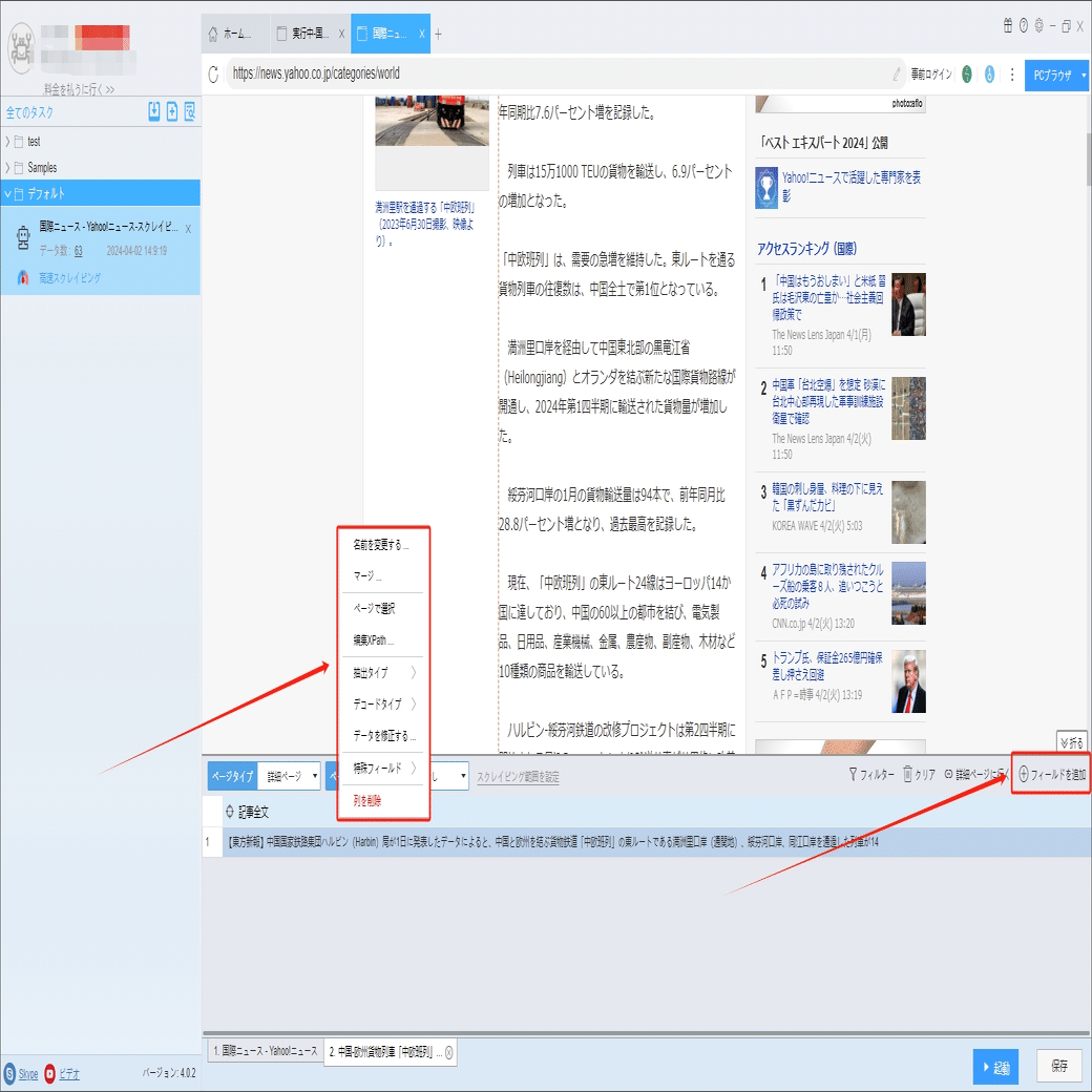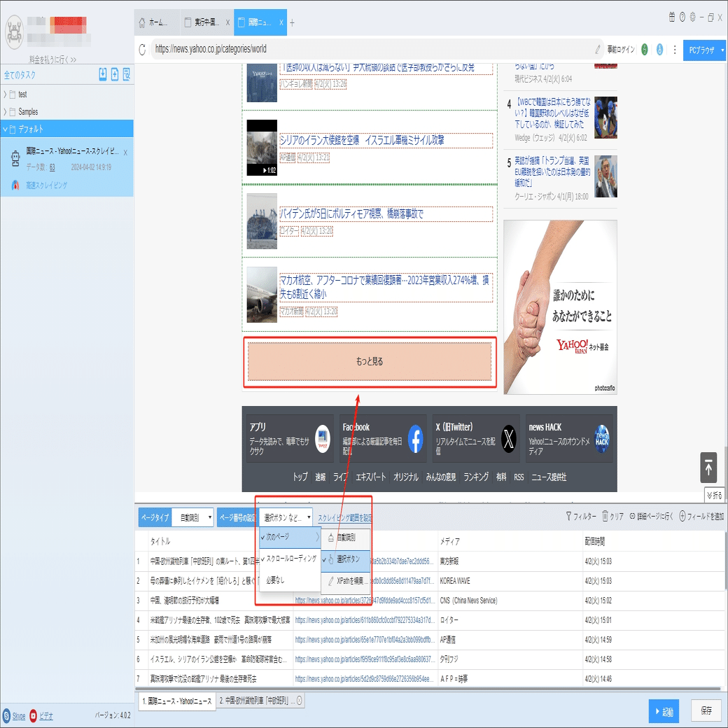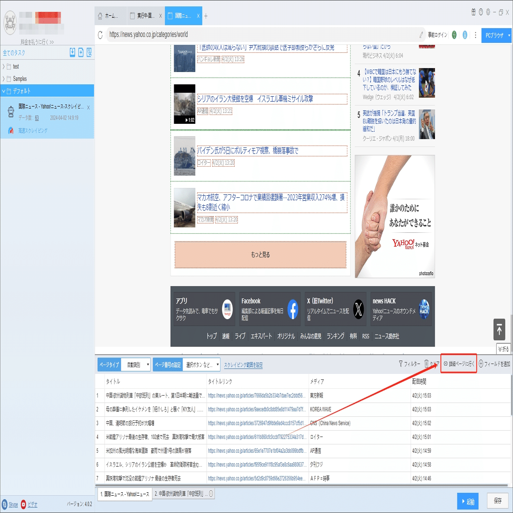 ソフトウェアの「詳細ページに行く」機能を利用し、記事の全文を抽出します。
