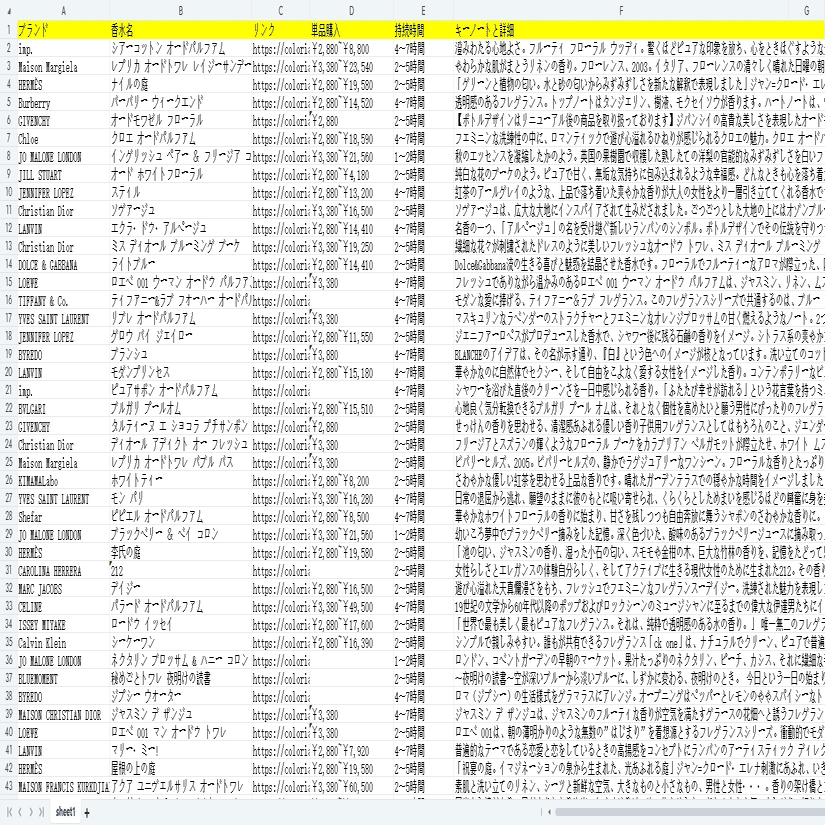 コスメ!カラリア香りの定期便から香水の情報をスクレイピングする