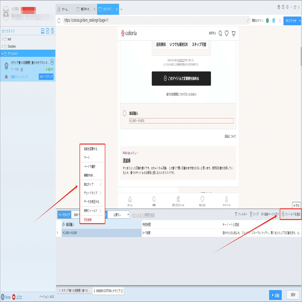 コスメ!カラリア香りの定期便から香水の情報をスクレイピングする.sst