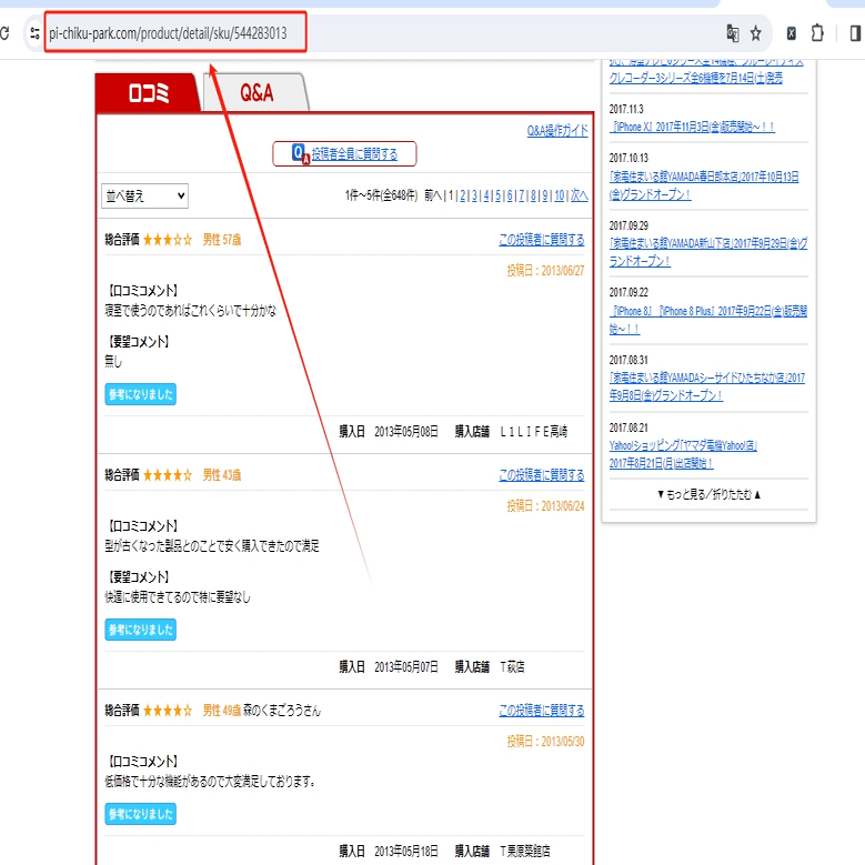 今回はある人気商品の口コミコメントをスクレイピングする方法を紹介します。まず、URLをコピーしてください。