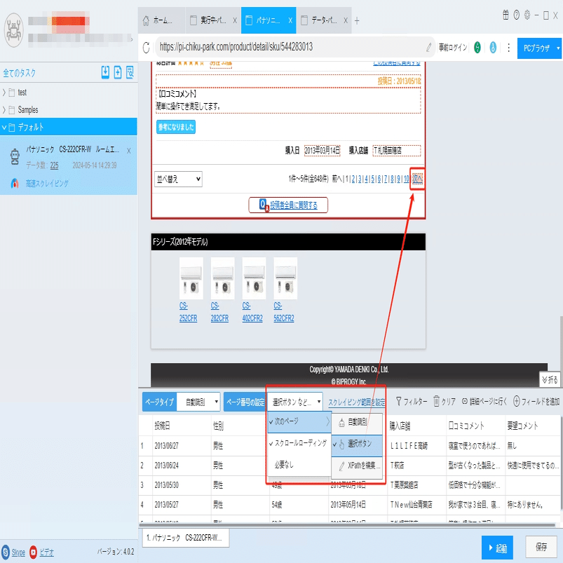 ScrapeStormは自動的にリスト要素とページボタンを識別できます。ページボタン「次へ」を手動で選択してください。下記のチュートリアルも参照してください。