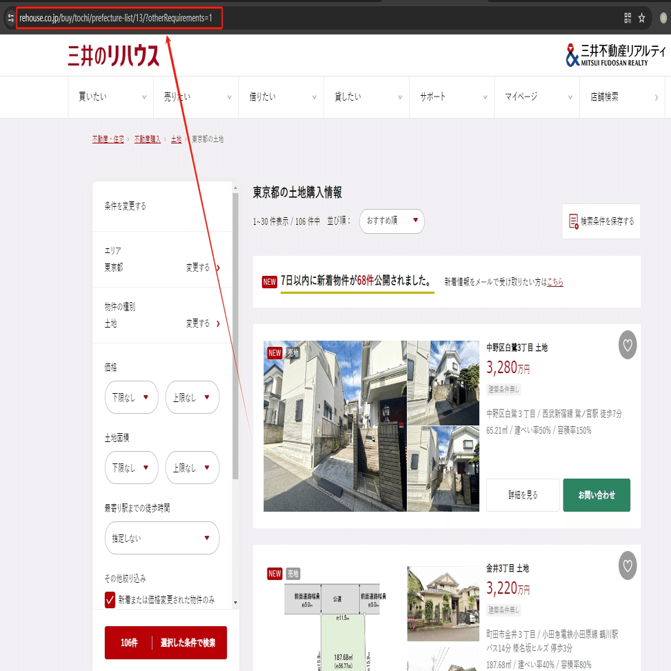 今回は東京都の土地購入情報をスクレイピングする方法を紹介します。まず、URLをコピーしてください。
