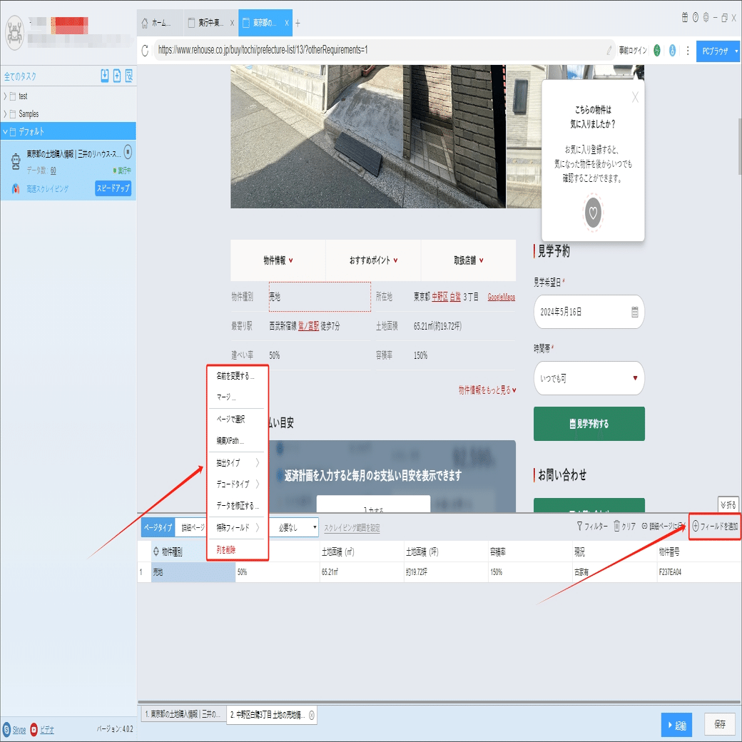 不動産投資!三井のリハウスから土地の情報をスクレイピングする