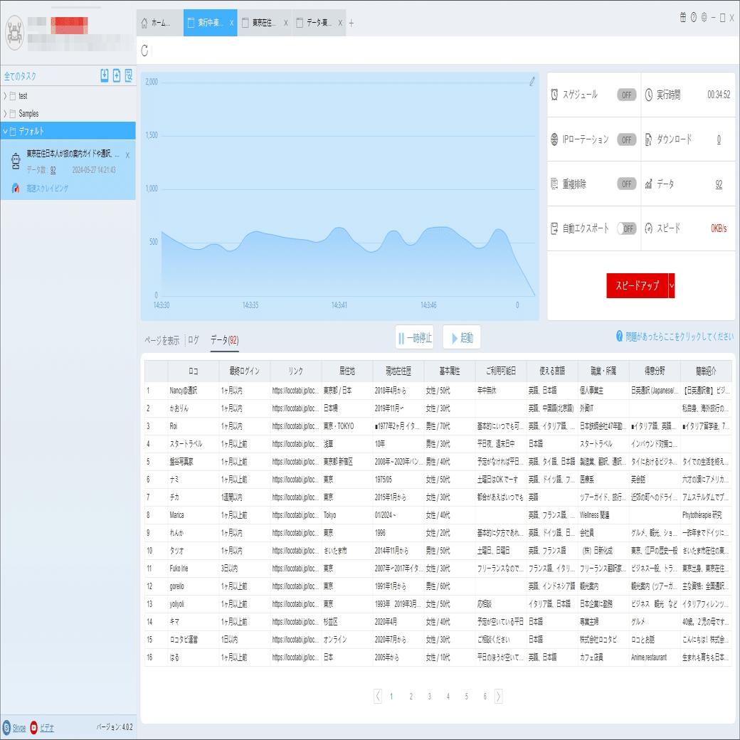 必要に応じて、スケジュール、アンチブロック、自動エクスポート、写真のダウンロード、スピードブーストを設定できます。サーバーに負荷しないように、遅延時間を設定してください。5秒以上を推薦します。スクレイピングタスクを配置する方法については、下記のチュートリアルをご参照ください。