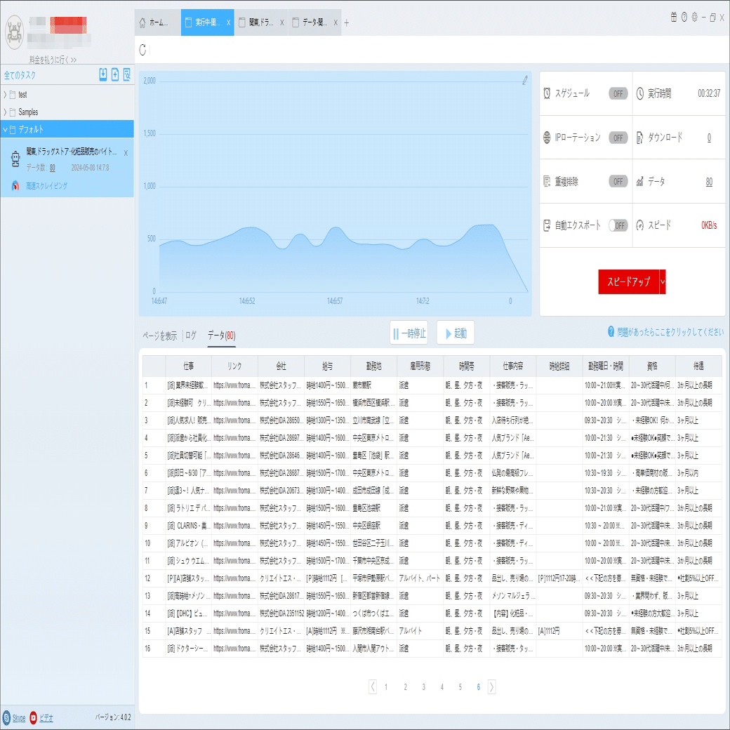 必要に応じて、スケジュール、アンチブロック、自動エクスポート、写真のダウンロード、スピードブーストを設定できます。サーバーに負荷しないように、遅延時間を設定してください。5秒以上を推薦します。スクレイピングタスクを配置する方法については、下記のチュートリアルをご参照ください。