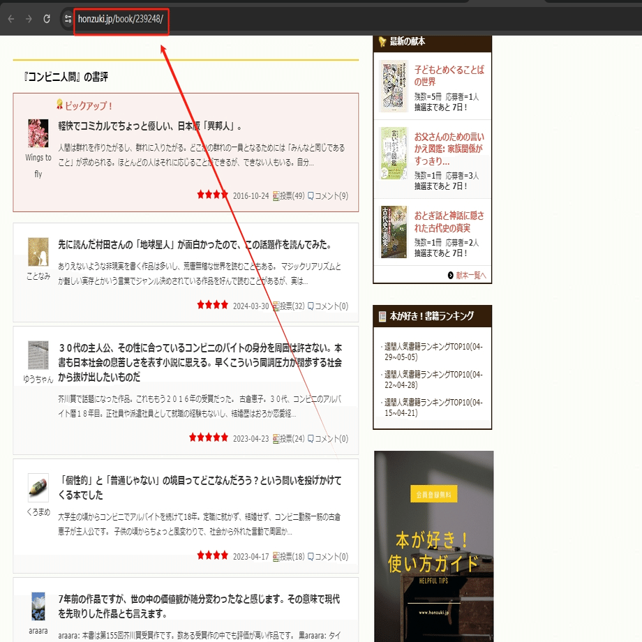 書籍・書評!本が好きから読書の感想文をスクレイピングする