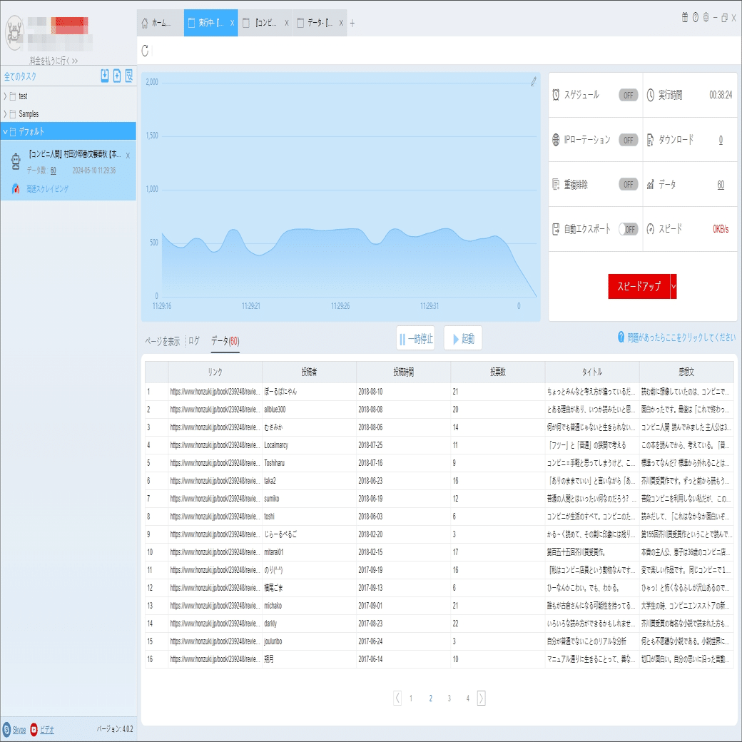 必要に応じて、スケジュール、アンチブロック、自動エクスポート、写真のダウンロード、スピードブーストを設定できます。サーバーに負荷しないように、遅延時間を設定してください。5秒以上を推薦します。スクレイピングタスクを配置する方法については、下記のチュートリアルをご参照ください。