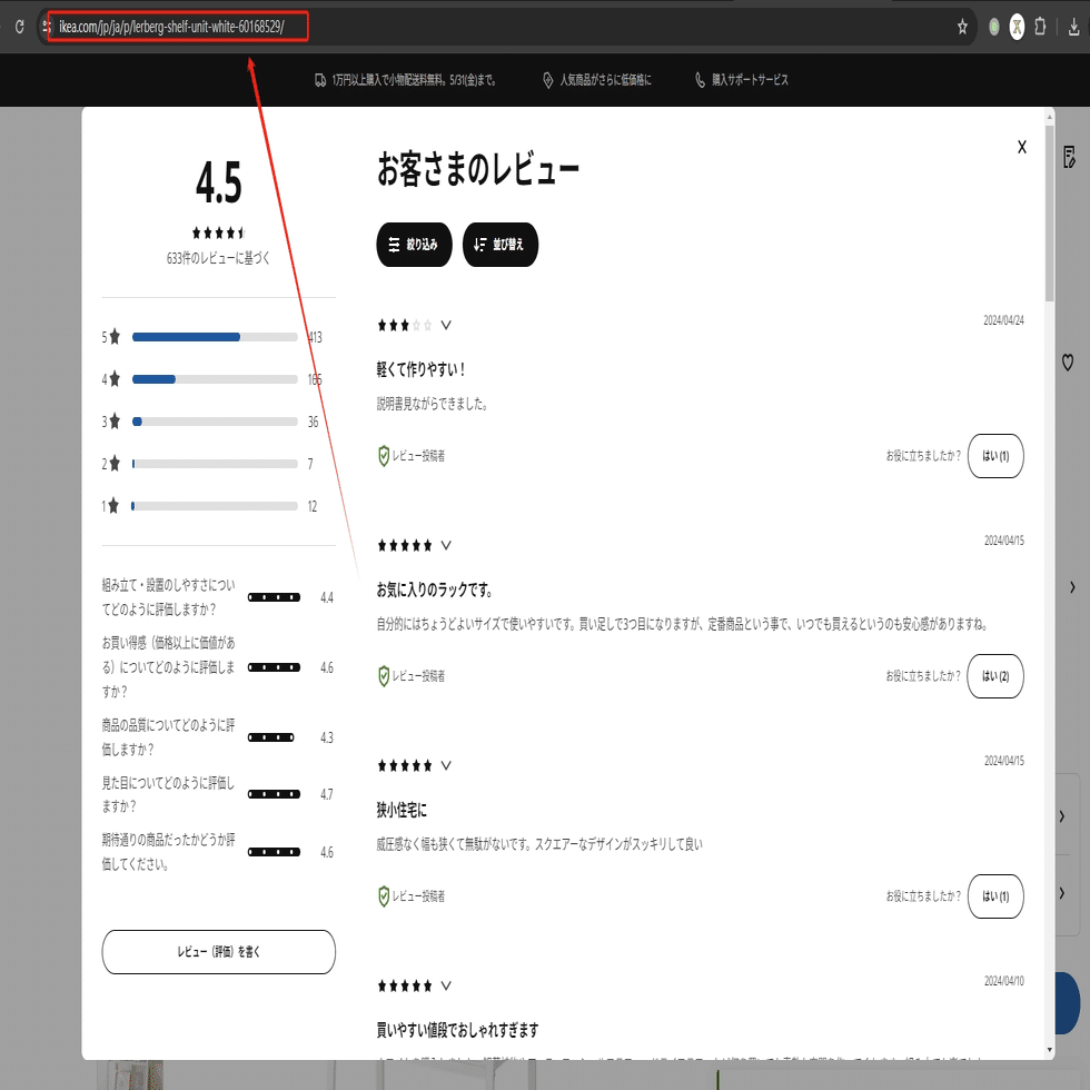 収納・インテリア!イケア(IKEA)から家具のレビューをスクレイピング