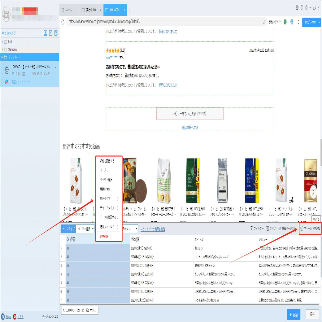通販サイト!LOHACO(ロハコ)から商品のレビューをスクレイピング