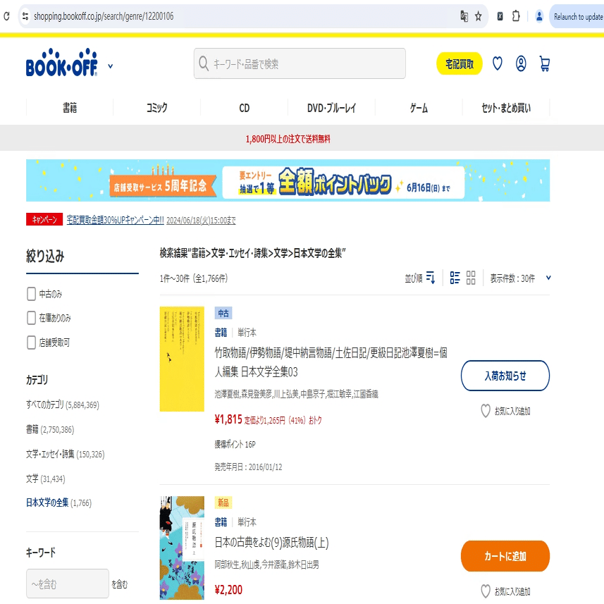中古書籍・メディア!BOOK OFFから書籍の情報をスクレイピングする