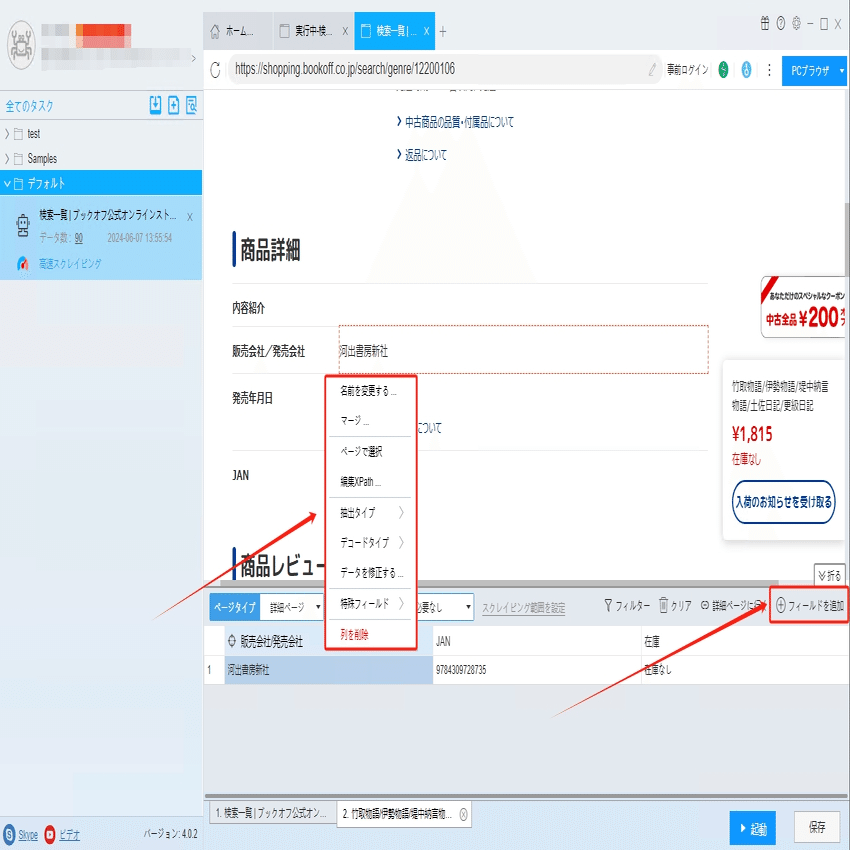 中古書籍・メディア!BOOK OFFから書籍の情報をスクレイピングする.sst