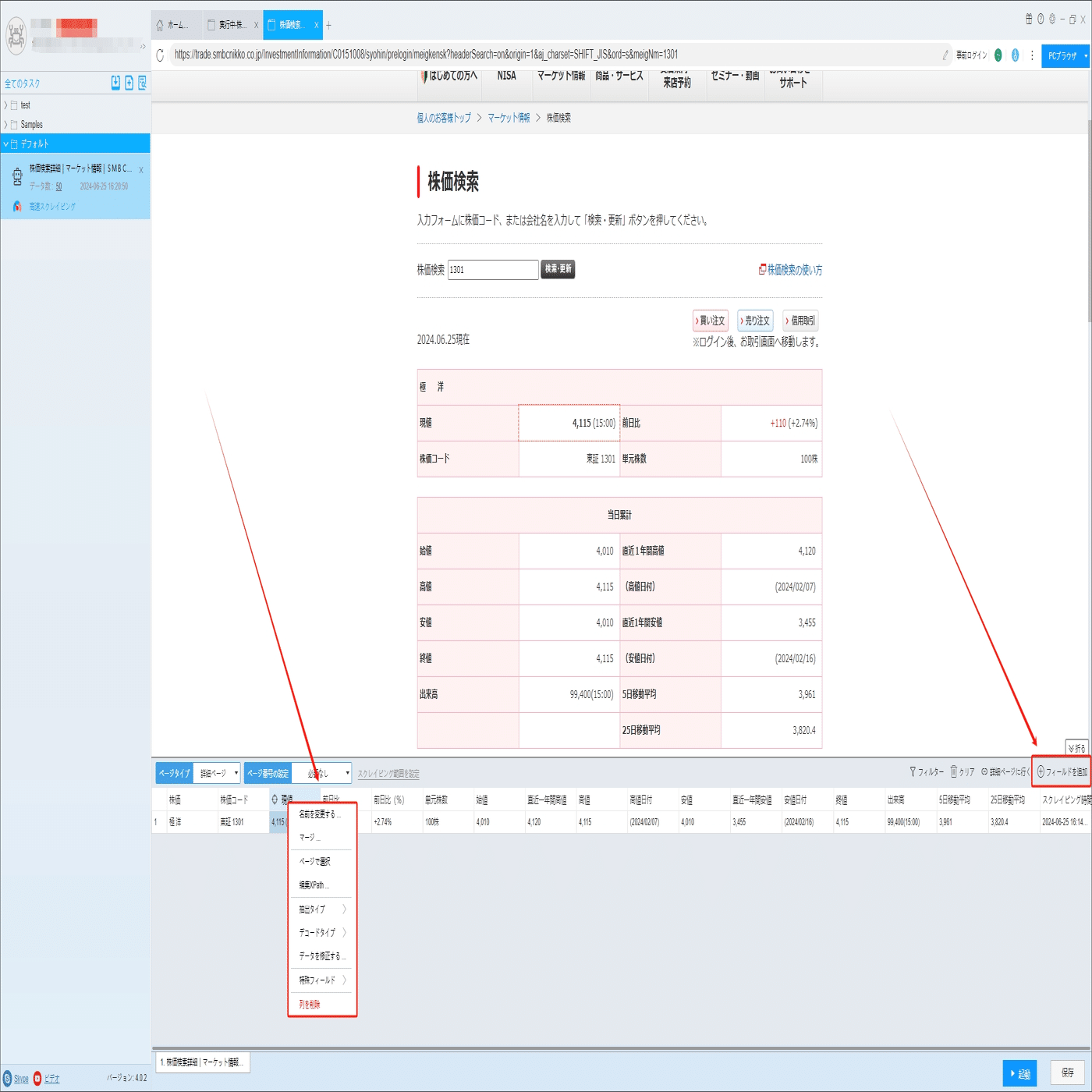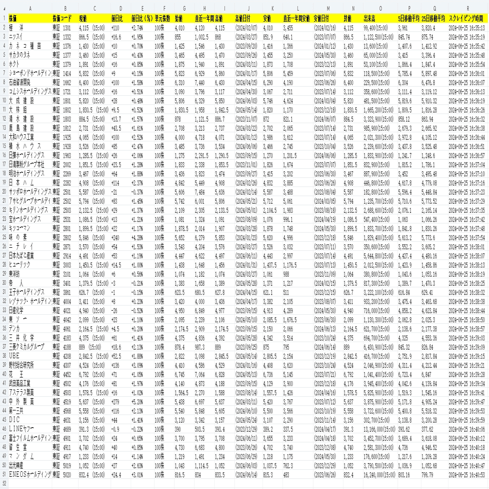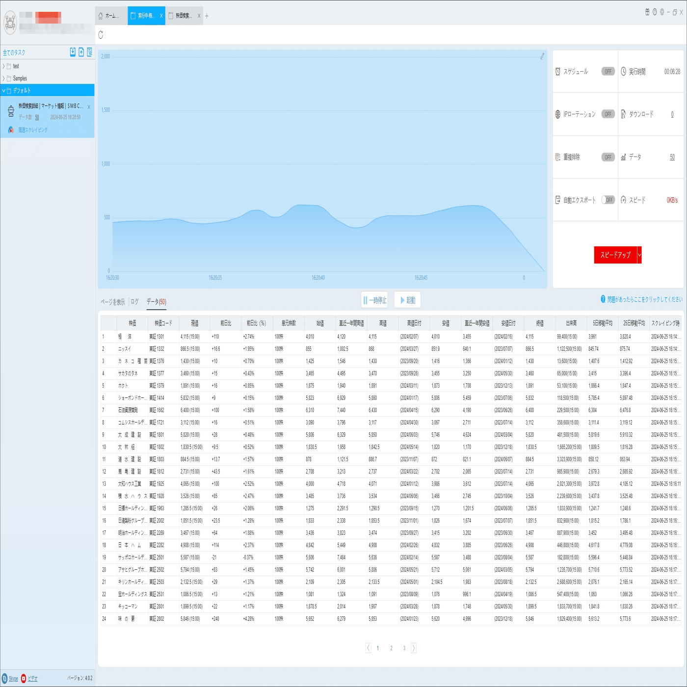 (2)しばらくすると、データがスクレイピングされる。
