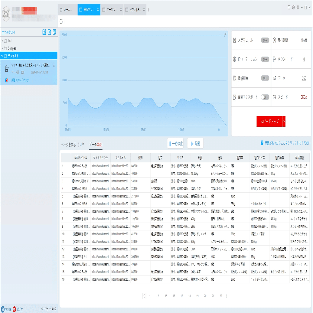 必要に応じて、スケジュール、アンチブロック、自動エクスポート、写真のダウンロード、スピードブーストを設定できます。サーバーに負荷しないように、遅延時間を設定してください。5秒以上を推薦します。スクレイピングタスクを配置する方法については、下記のチュートリアルをご参照ください。