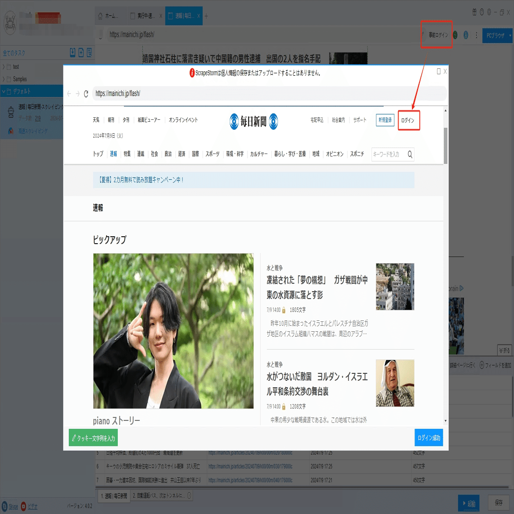 事前ログイン画面で毎日新聞をログインして、有料記事を読めます。