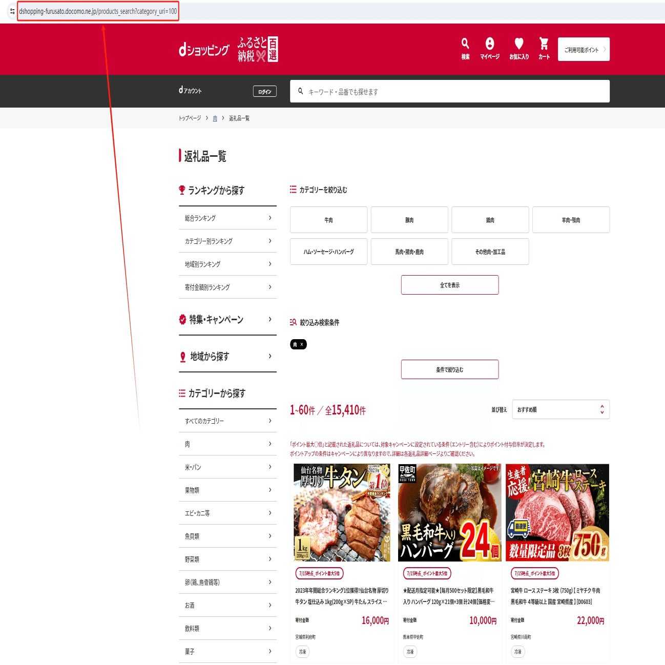 【通販】ふるさと納税!dショッピングから商品の情報をスクレイピングする