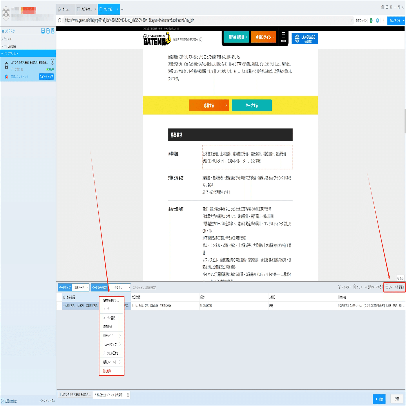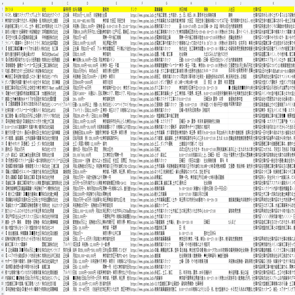 【求人】アルバイト・就職!GATEN職から求人情報をスクレイピング