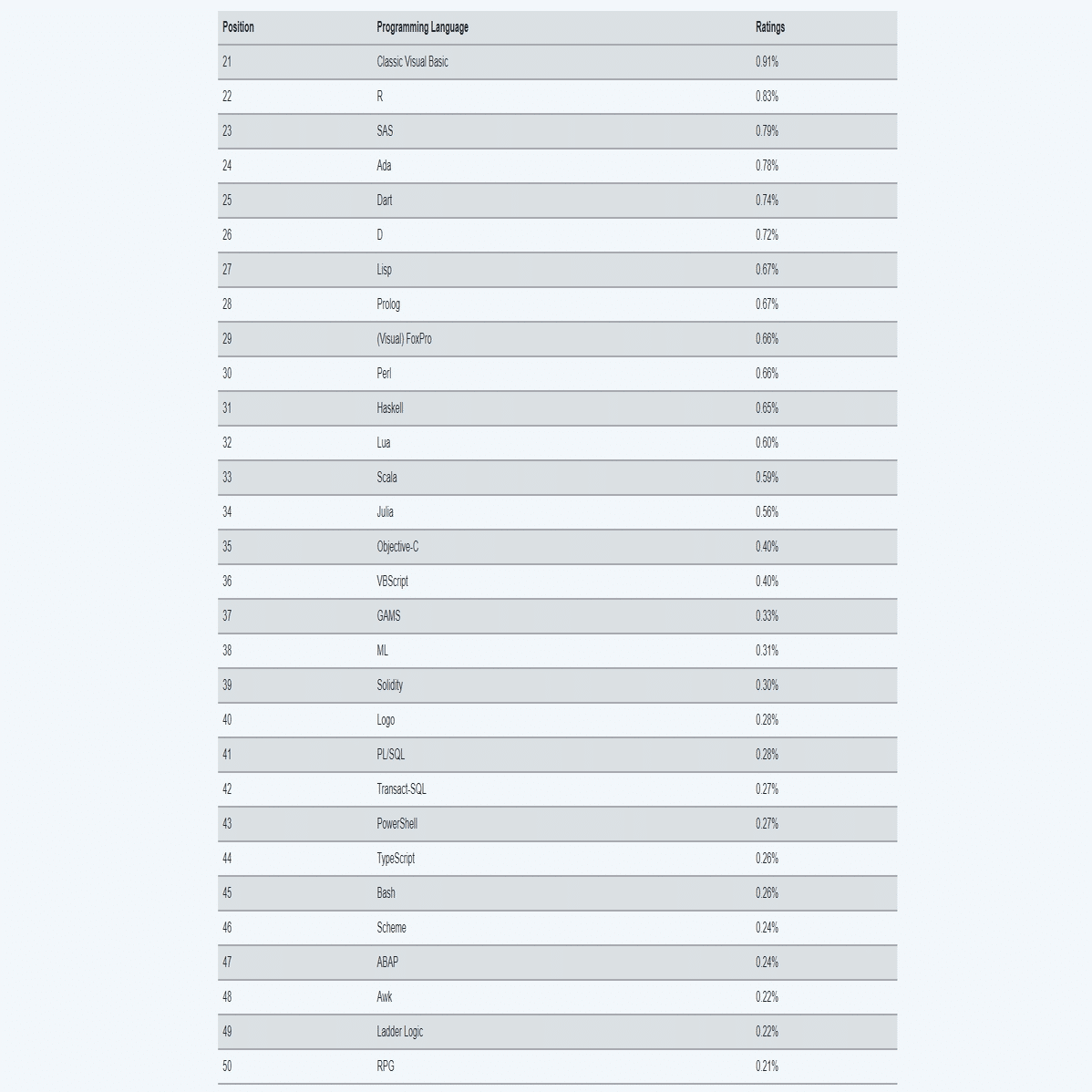 TIOBEの7月ランキング発表 | 勢いあるRustはTop10に食い込むか?