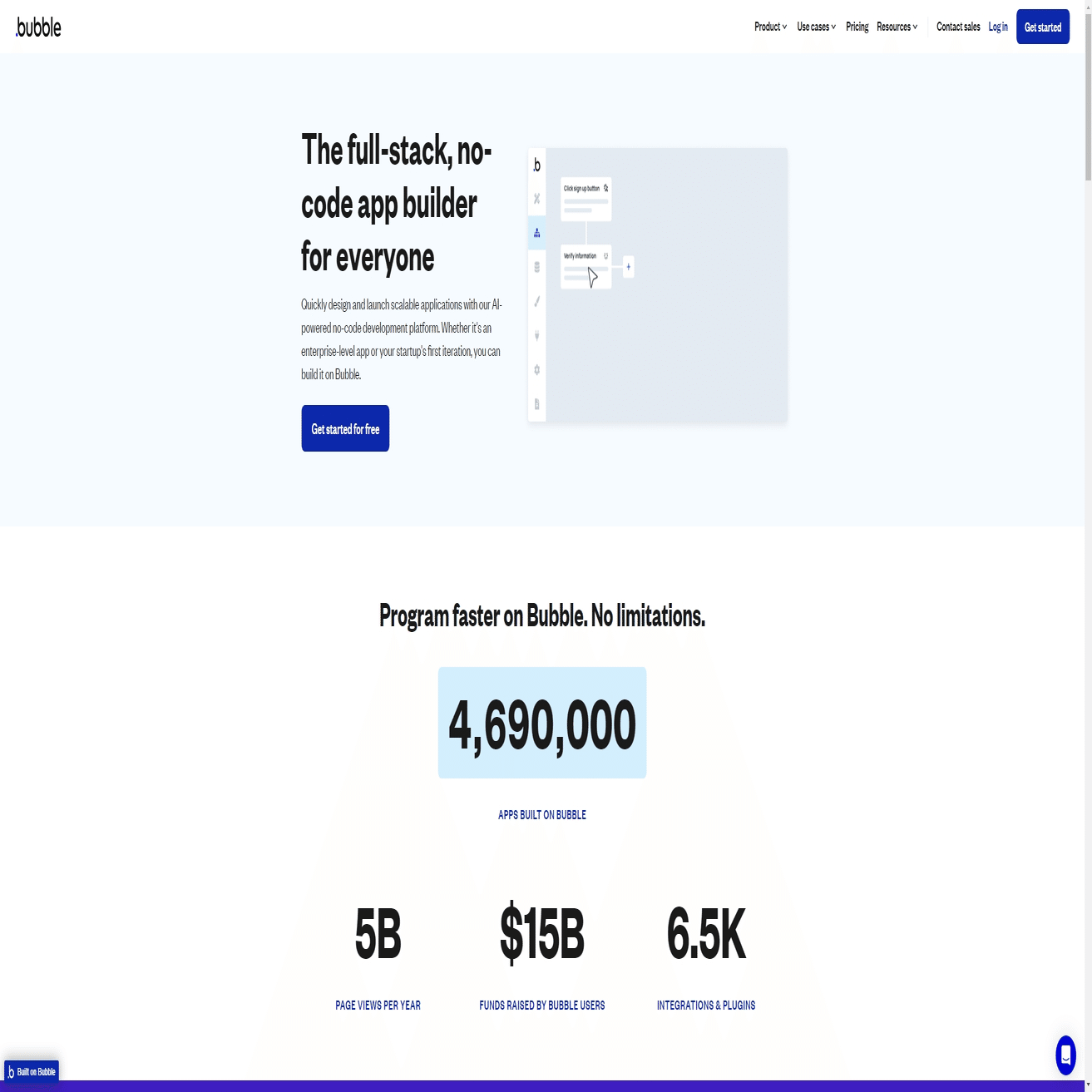 Bubble は、ノーコードのアプリケーション開発プラットフォームで、AI関連の機能もサポートしています。ユーザーは、インターフェースを直感的に操作しながら、AIモデルを統合することができます。Bubbleの無料プランでは、限られた機能を使ってAI機能を試すことができ、プロトタイプや簡単なアプリケーションの開発に便利です。