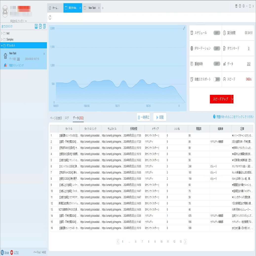 必要に応じて、スケジュール、アンチブロック、自動エクスポート、写真のダウンロード、スピードブーストを設定できます。サーバーに負荷しないように、遅延時間を設定してください。5秒以上を推薦します。スクレイピングタスクを配置する方法については、下記のチュートリアルをご参照ください。