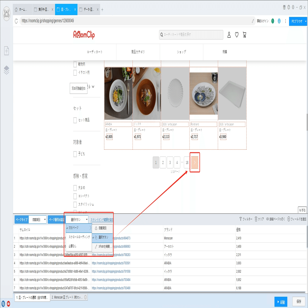 ScrapeStormは自動的にリスト要素とページボタンを識別できます。偶に誤差があれば、手動で選択してください。下記のチュートリアルも参照してください。