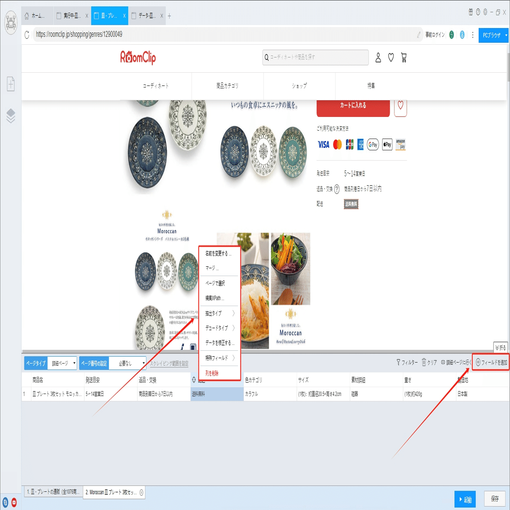 「フィールドを追加」ボタンをクリックして、画面に必要な要素を選択、データが自動的に抽出されます。また、必要に応じてフィールドの名前の変更または削除、結合できます。