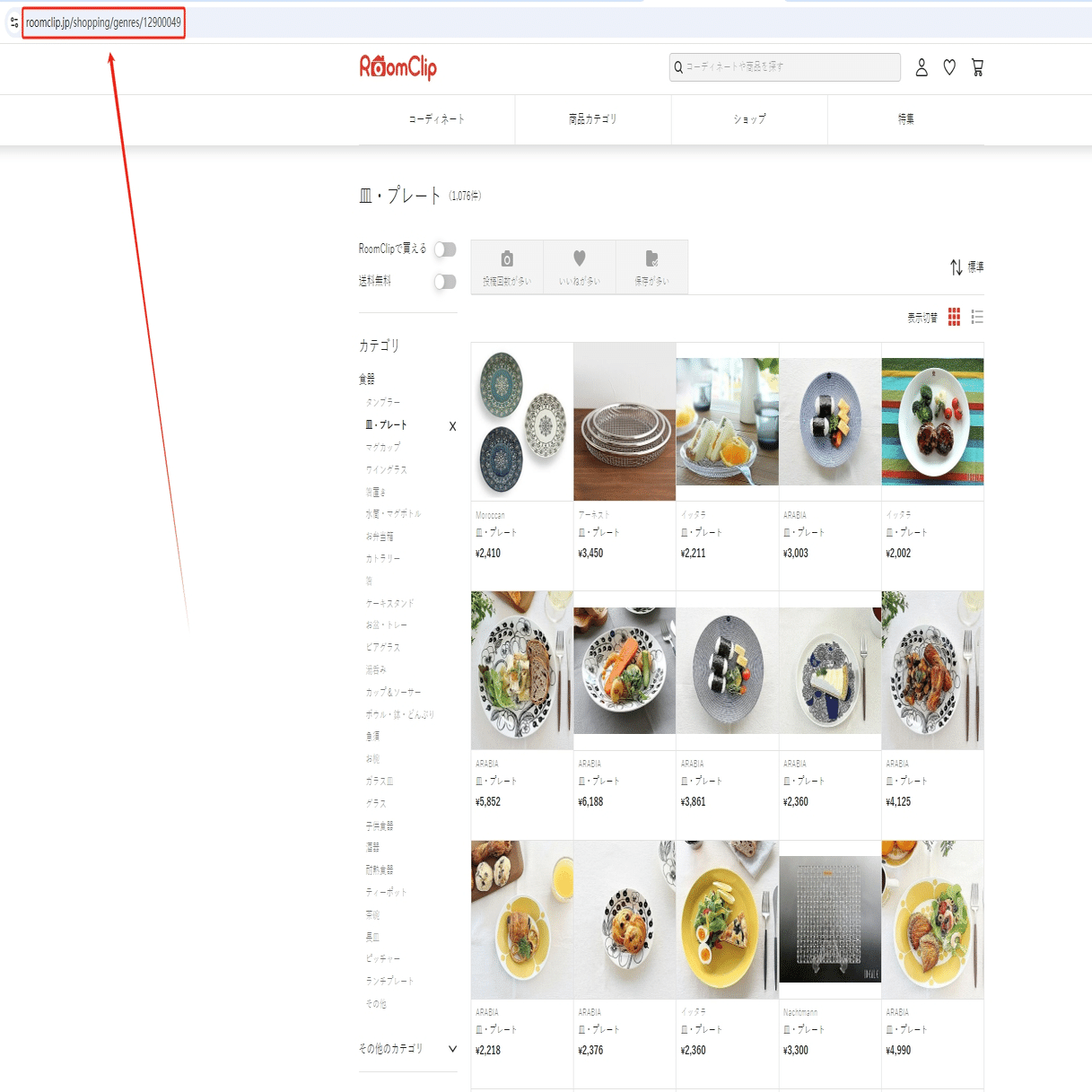 今回は皿・プレート一覧ページから書籍の情報を収得し、そのスクレイピング方法を紹介します。まず、URLをコピーしてください。