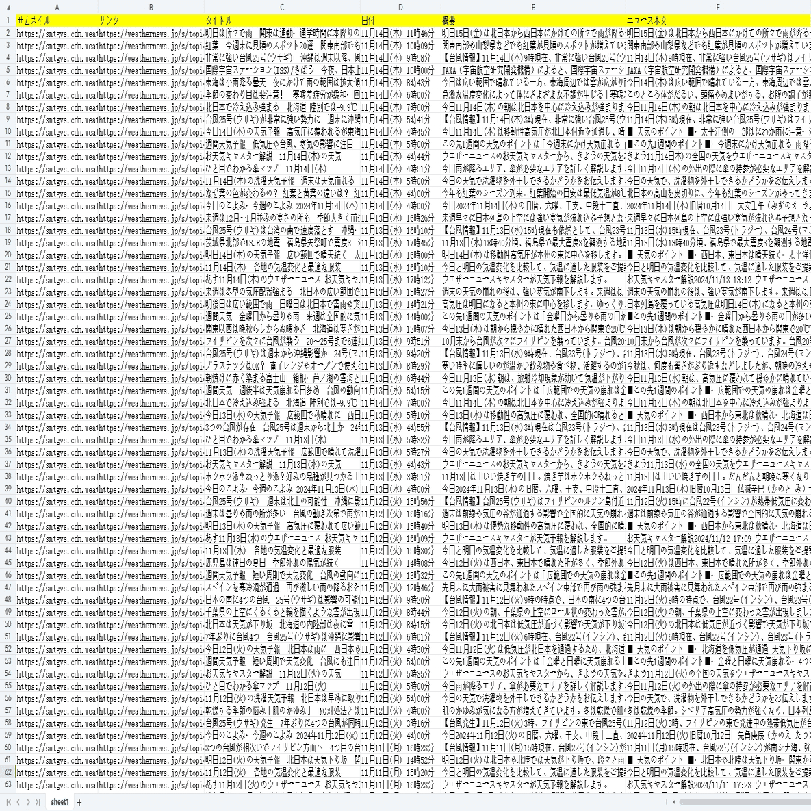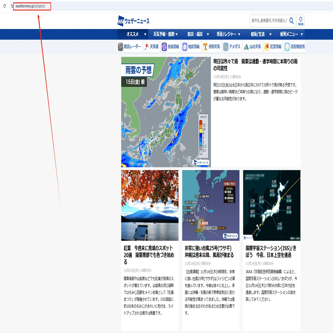 今回はニュースの一覧ページからウェザー情報を収得し、そのスクレイピング方法を紹介します。まず、URLをコピーしてください。