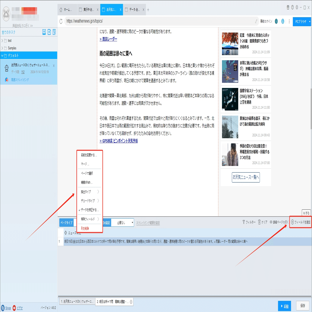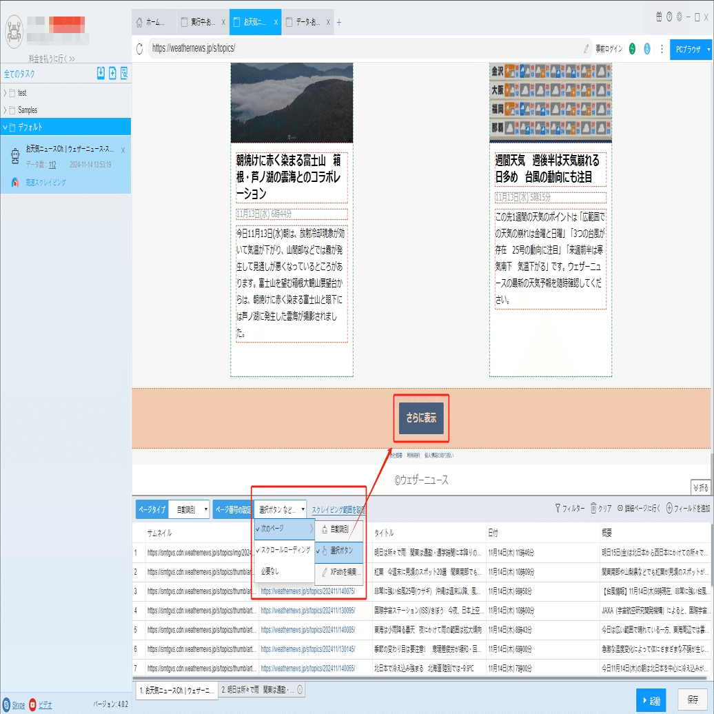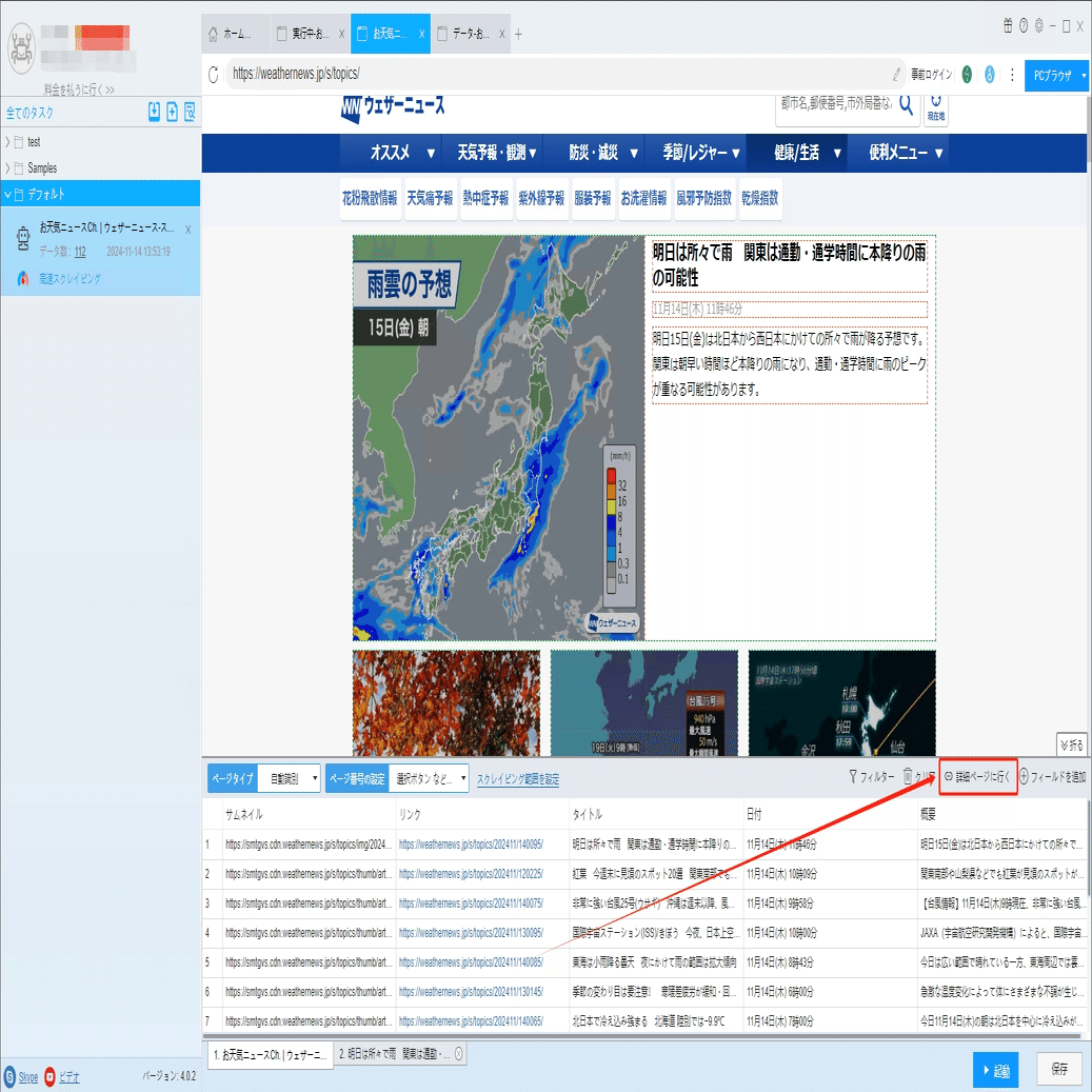 ソフトウェアの「詳細ページに行く」機能を利用し、記事の本文を抽出します。