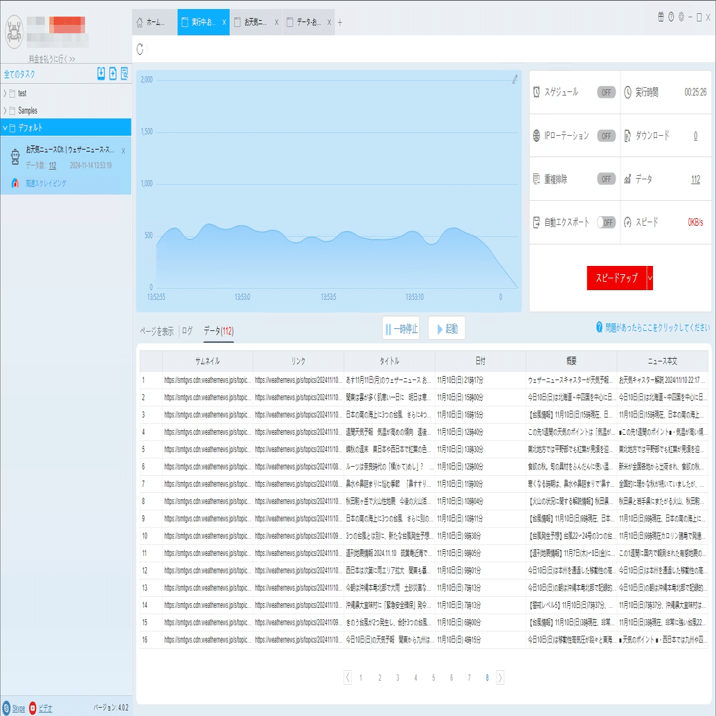 必要に応じて、スケジュール、アンチブロック、自動エクスポート、写真のダウンロード、スピードブーストを設定できます。サーバーに負荷しないように、遅延時間を設定してください。5秒以上を推薦します。スクレイピングタスクを配置する方法については、下記のチュートリアルをご参照ください。