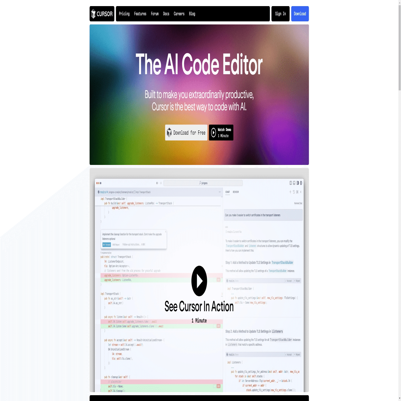Cursorは、AI駆動のコード補完とコードナビゲーション機能を備えたコードエディターです。文脈に基づいてインテリジェントなコード提案や迅速な修正案を提供し、開発者が反復作業を減らし、コーディング効率を向上させるのに役立ちます。Cursorは、さまざまな言語や開発ニーズに対応できる、モダンなエディター機能を統合しています。