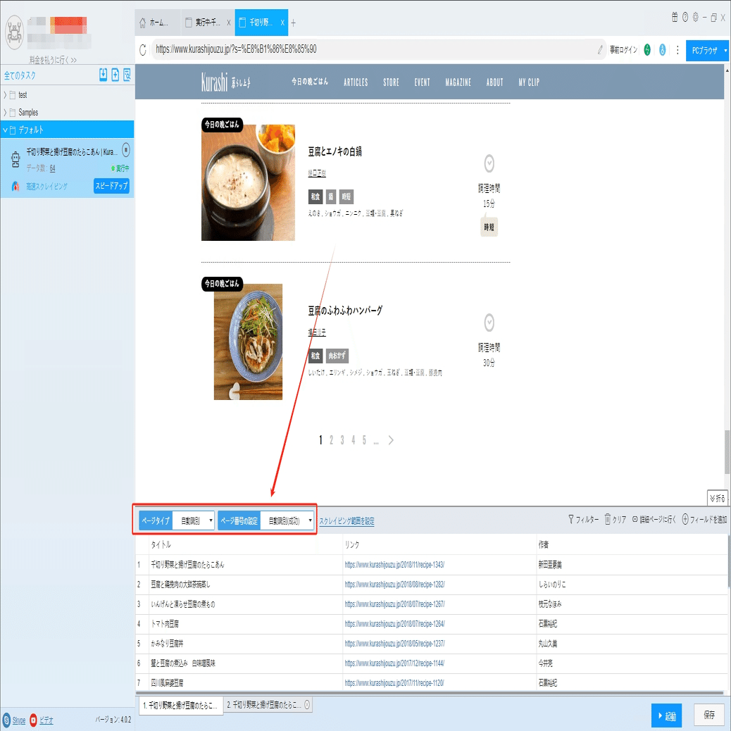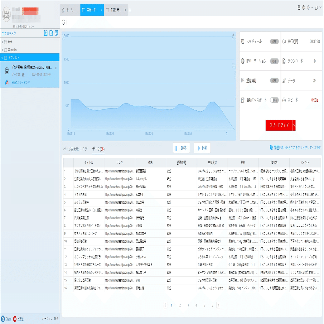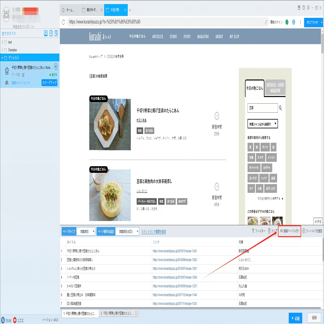 「詳細ページに行く」ボタンをクリックして、レシピの詳細情報ページに移動して、素材、作り方などの情報を抽出できます。