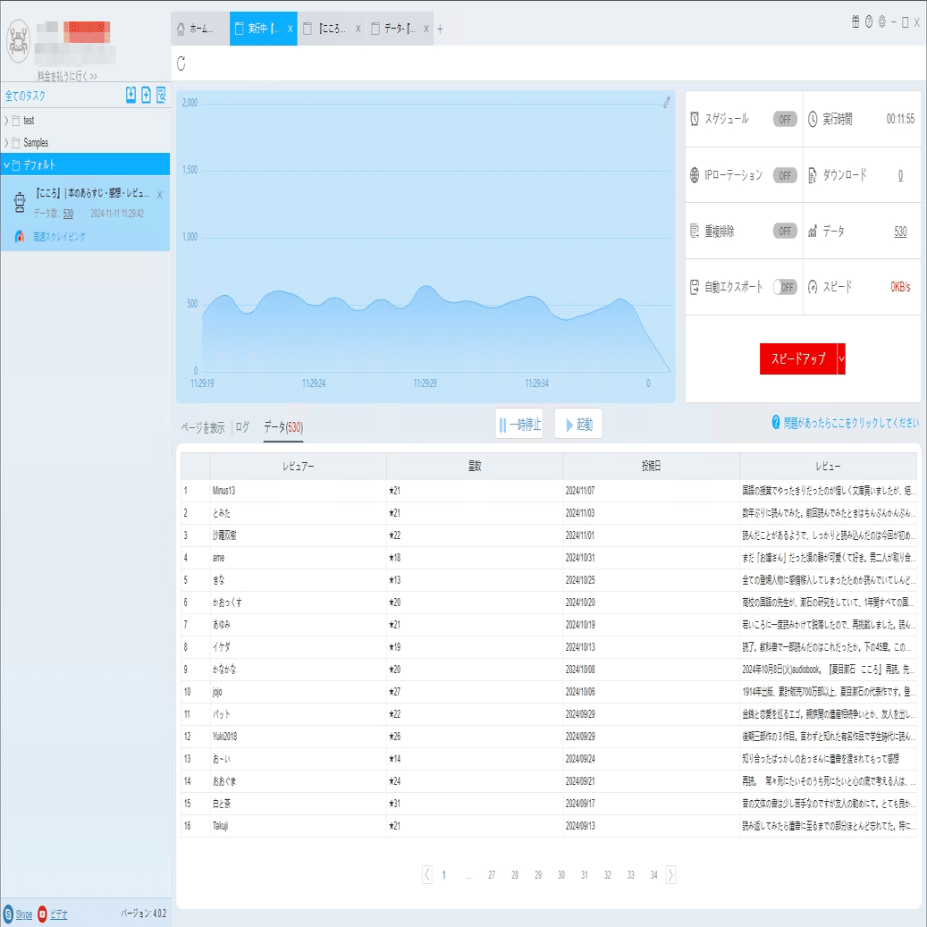 必要に応じて、スケジュール、アンチブロック、自動エクスポート、写真のダウンロード、スピードブーストを設定できます。サーバーに負荷しないように、遅延時間を設定してください。5秒以上を推薦します。スクレイピングタスクを配置する方法については、下記のチュートリアルをご参照ください。