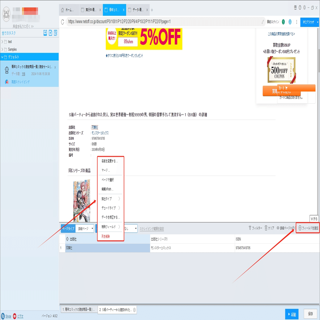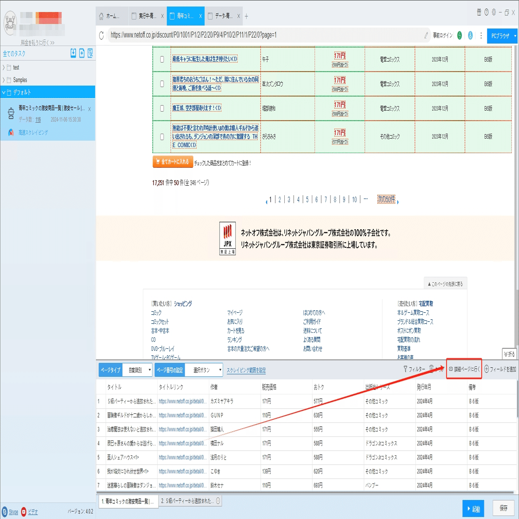 ソフトウェアの「詳細ページに行く」機能を利用し、ISBNコード、出版社などの情報を抽出します。