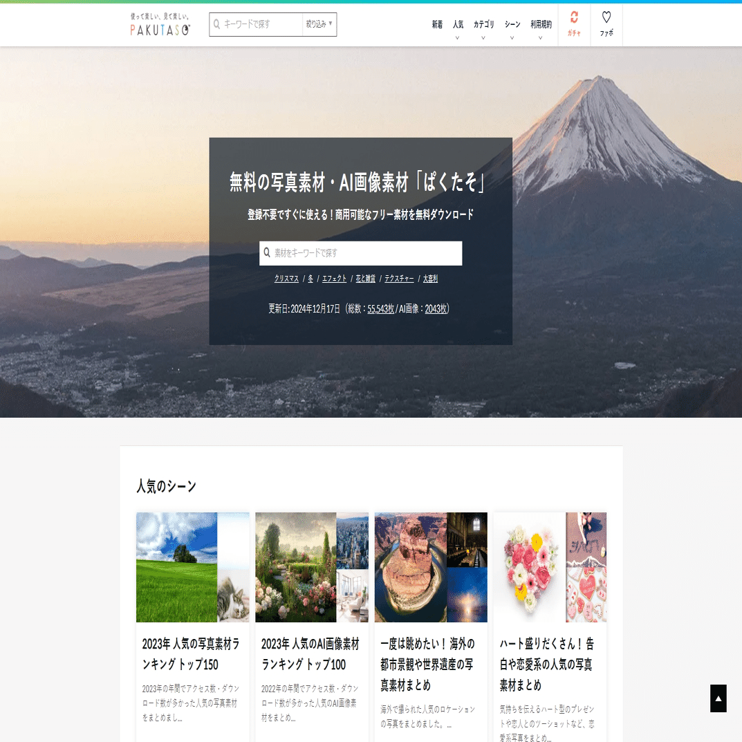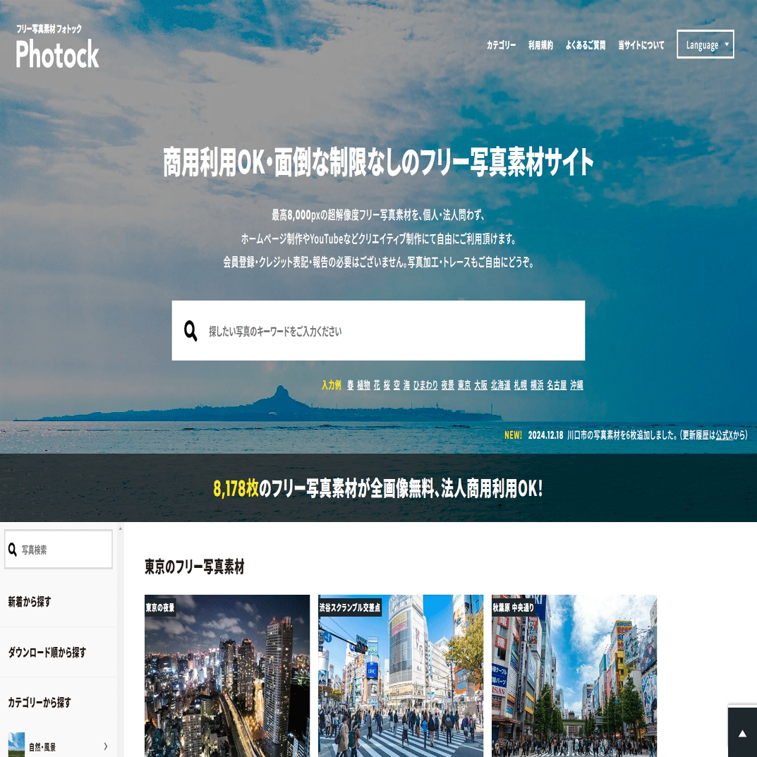 Photockは、自然や都市風景、建築物、人物写真などを中心に提供する写真素材サイトです。写真の品質は非常に高く、プロジェクトや広告制作などにも利用されています。