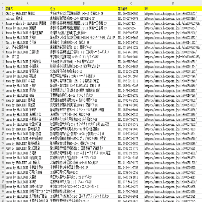美容室・ヘアサロン!HEADLIGHTからサロンの情報をスクレイピング