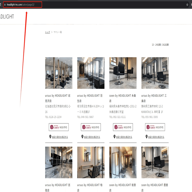 今回はサロン一覧ページのスクレイピング方法を紹介します。まず、URLをコピーしてください。