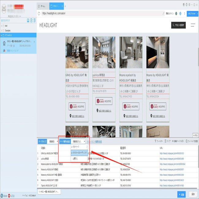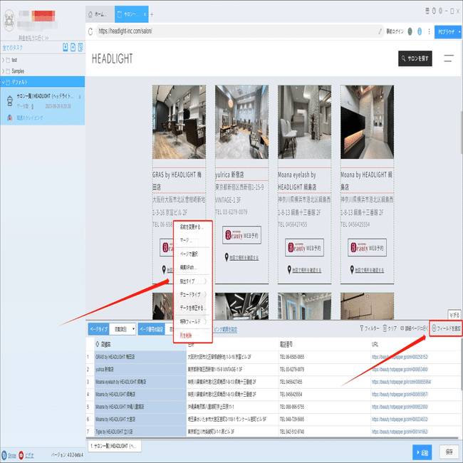 美容室・ヘアサロン!HEADLIGHTからサロンの情報をスクレイピング.sst