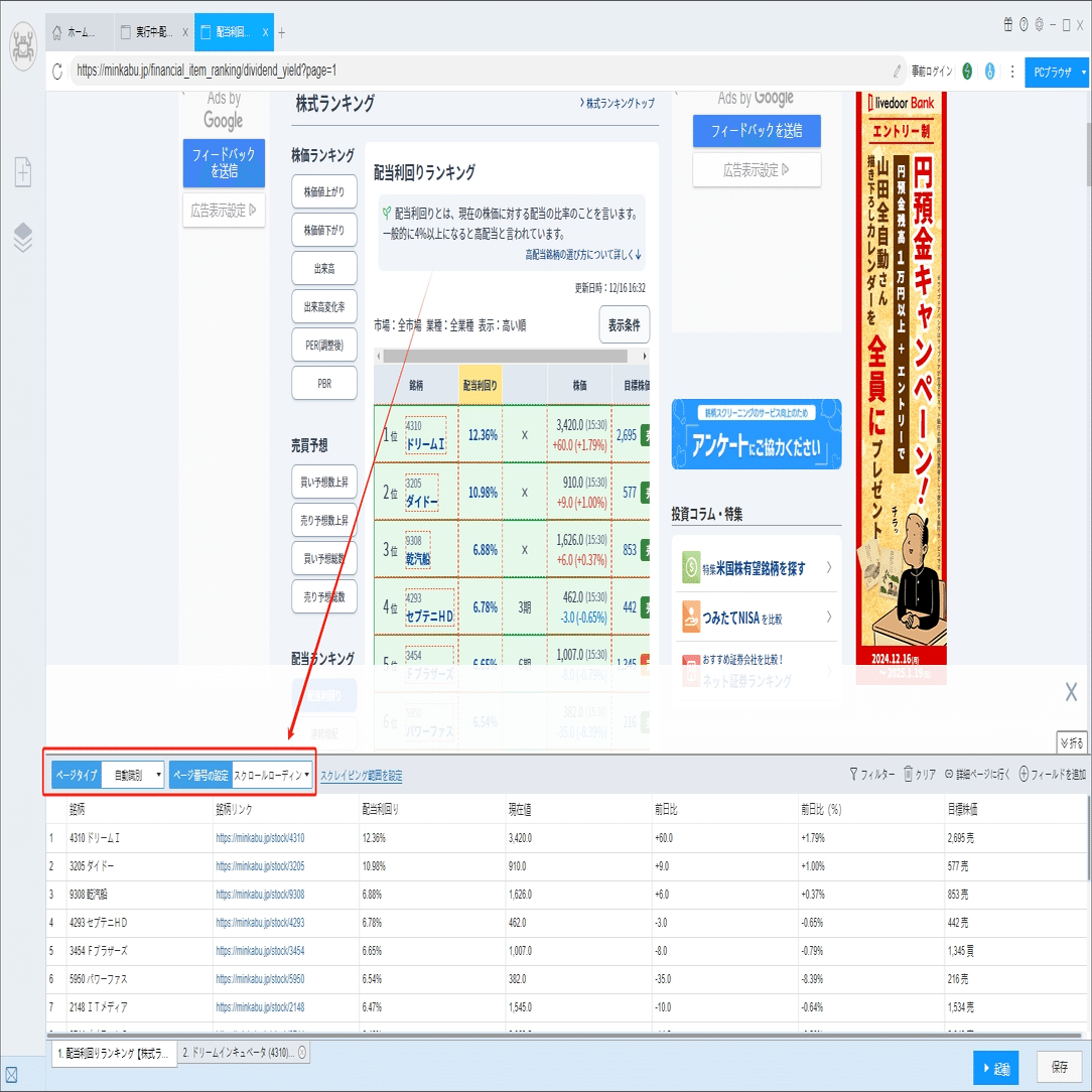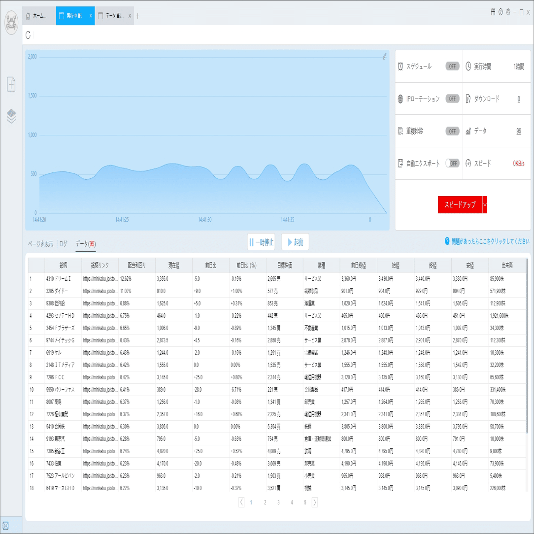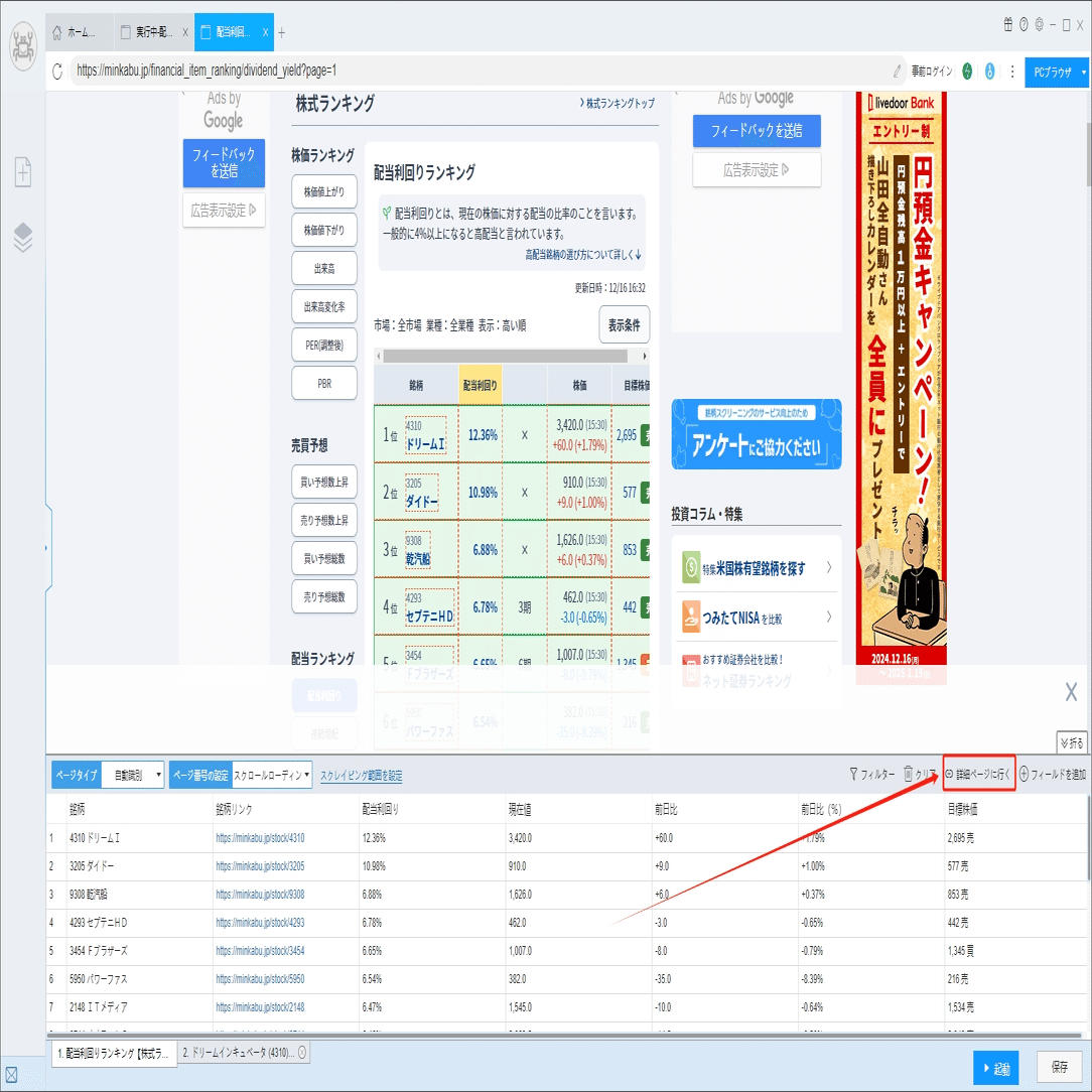 ソフトウェアの「詳細ページに行く」機能を利用し、始値、安値、高値などの情報を抽出します。