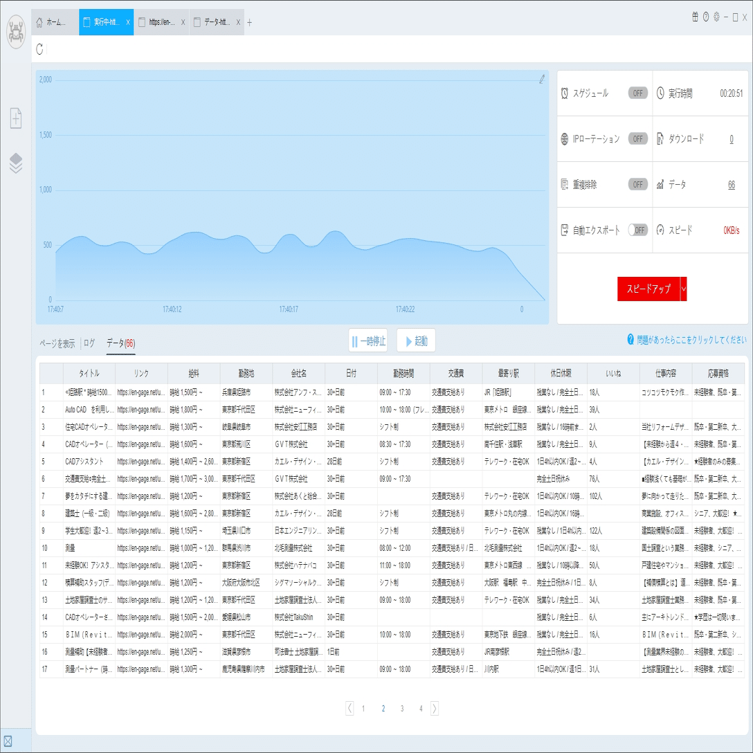 (2)しばらくすると、データがスクレイピングされる。