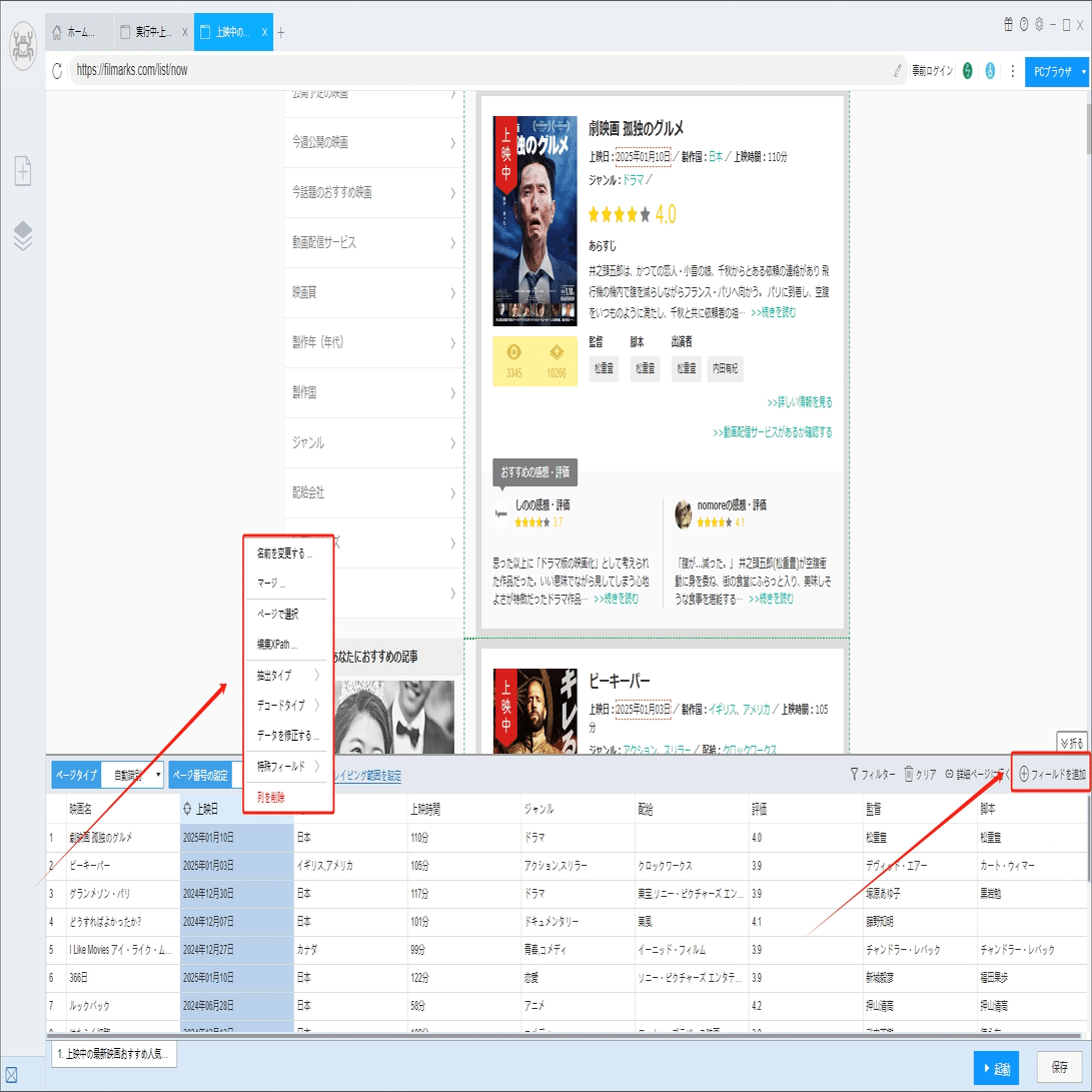 「フィールドを追加」ボタンをクリックして、画面に必要な要素を選択、データが自動的に抽出されます。また、必要に応じてフィールドの名前の変更または削除、結合できます。