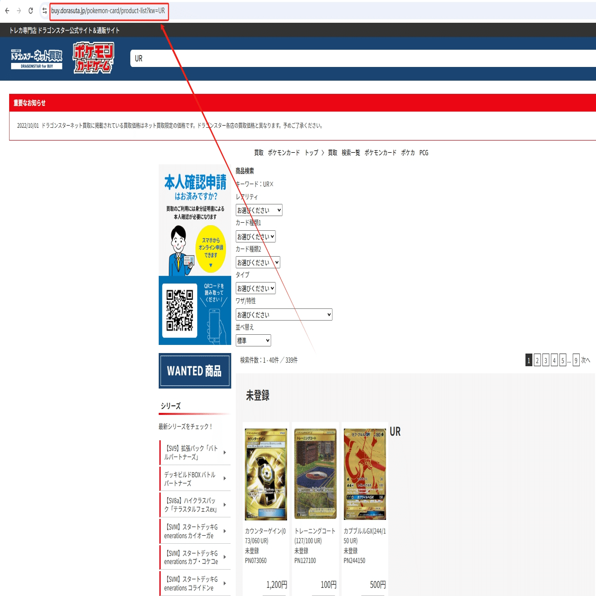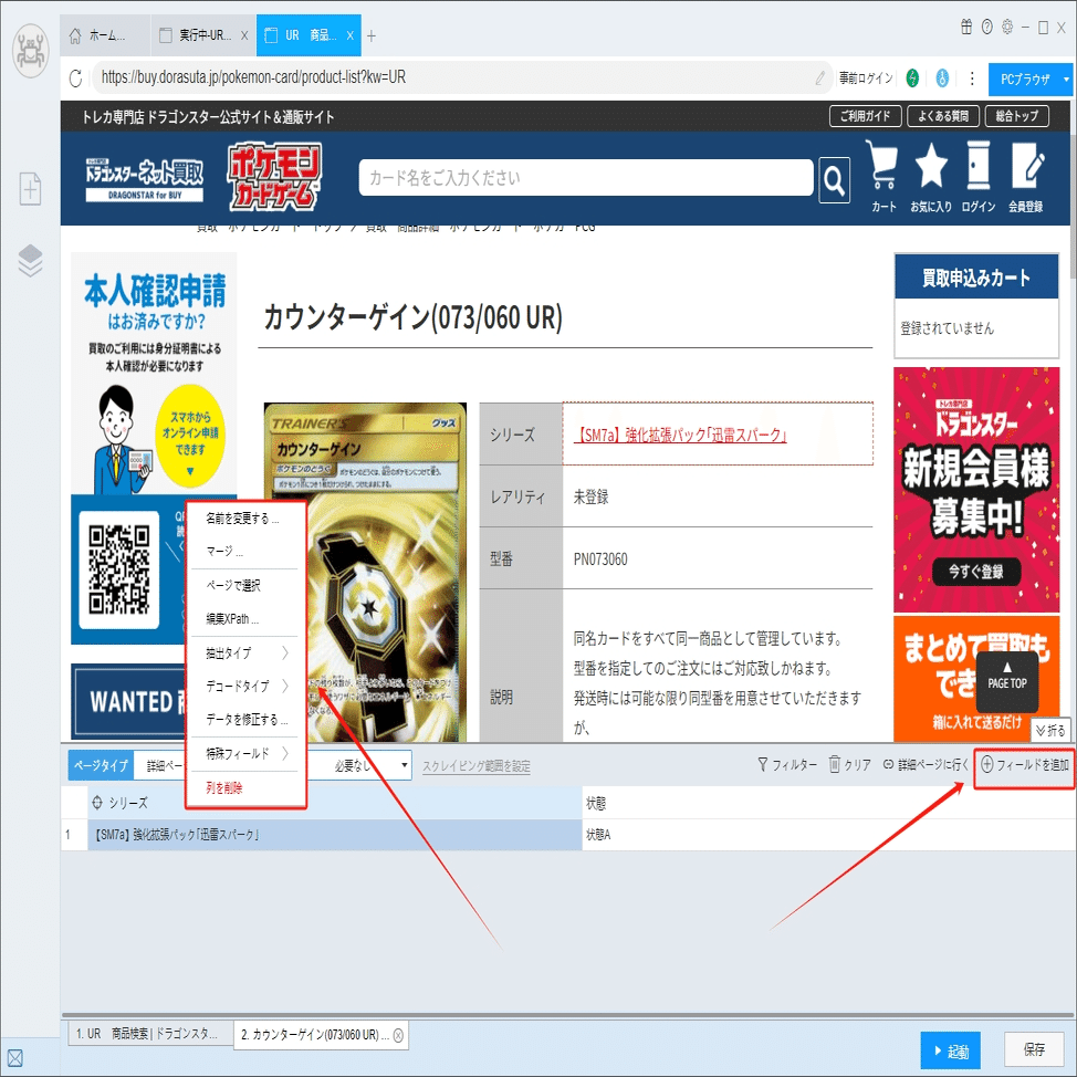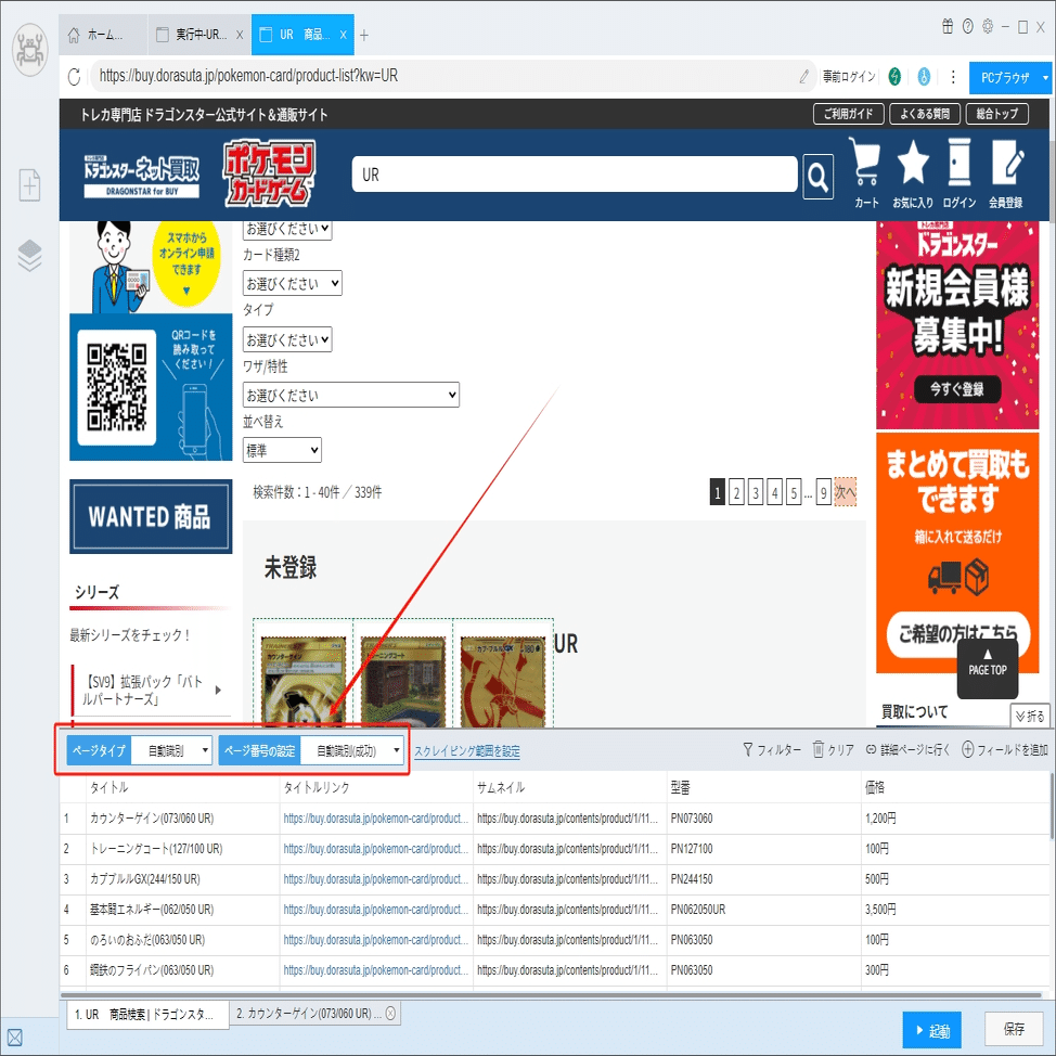 【ネット買取】トレカ!ドラゴンスターから商品の情報をスクレイピング